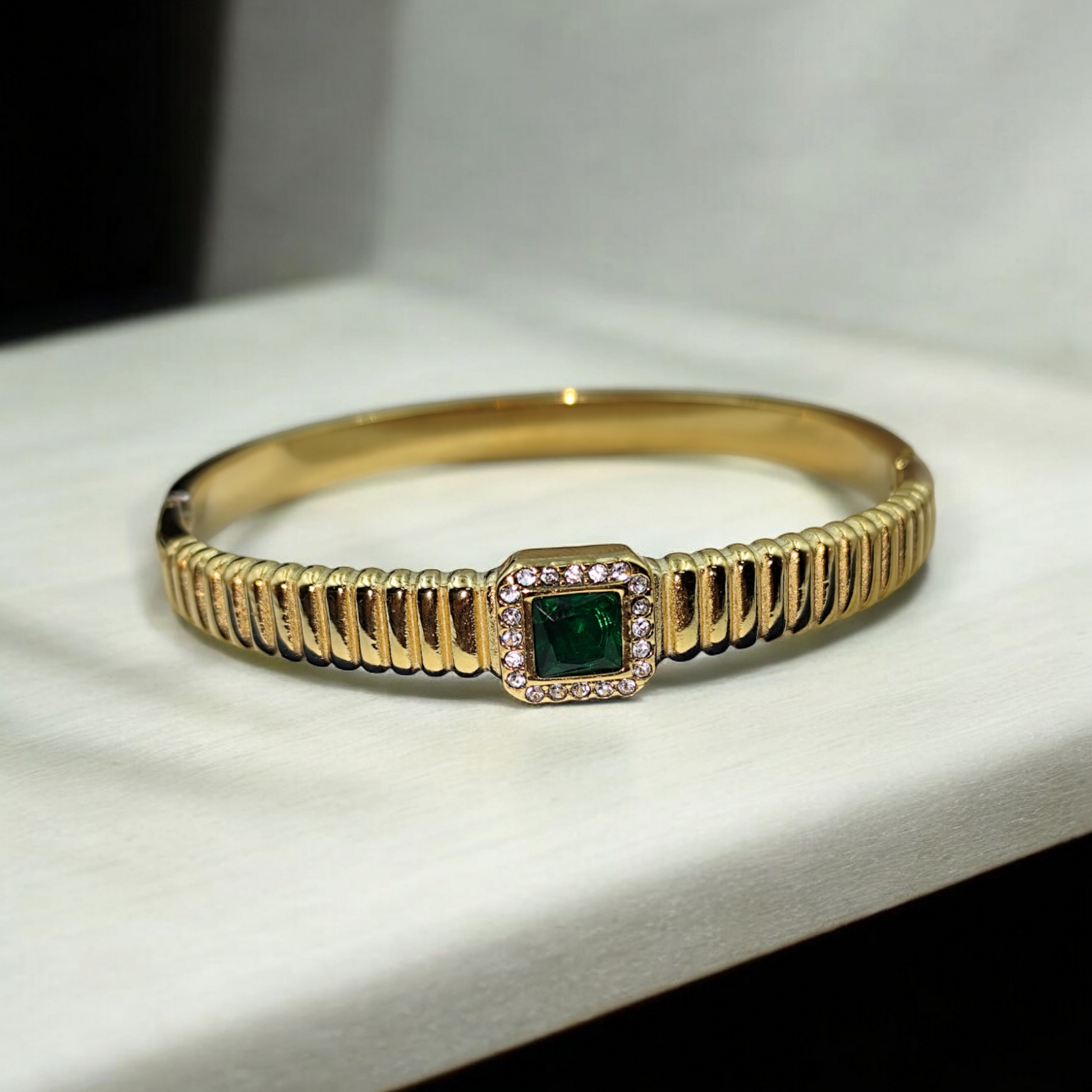 Elevate your style with our exquisite anti-tarnish bracelet, crafted in a luxurious golden hue and adorned with a stunning green stone. This bracelet is designed to be both beautiful and durable, ensuring it remains a timeless piece in your jewelry collection.